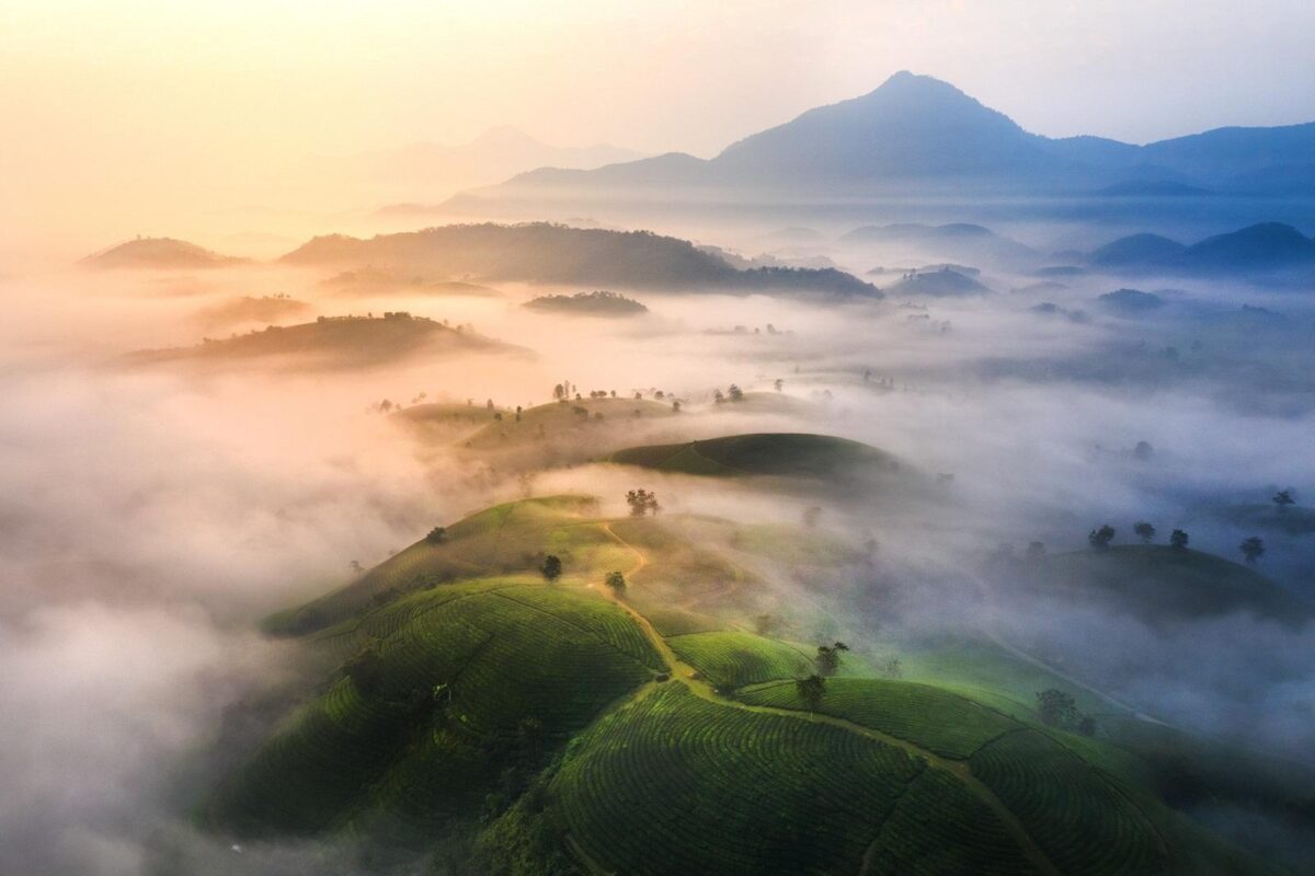 Đồi chè Long Cốc – Phú Thọ trong một buổi sương sớm.
